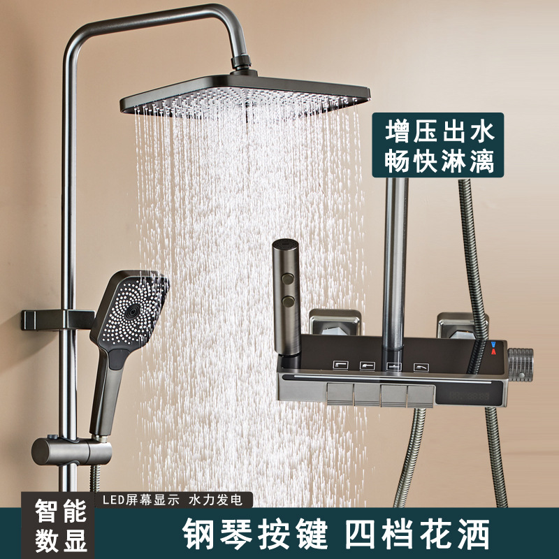 Pasokan langsung pabrik kamar mandi tombol piano tembaga setelan mandi lampu depan tampilan digital booster kamar mandi satu klik pengiriman