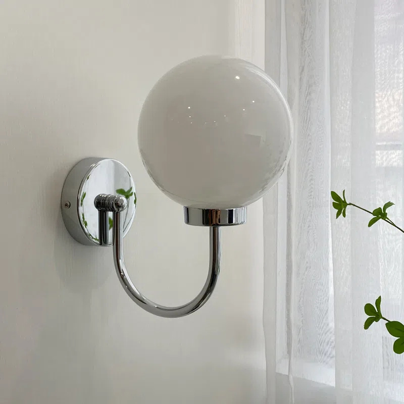 Bauhuan lampu dinding samping tempat tidur, lampu belajar Hotel ruang tamu dinding TV kreatif bola susu putih kaca dinding kuno Tengah