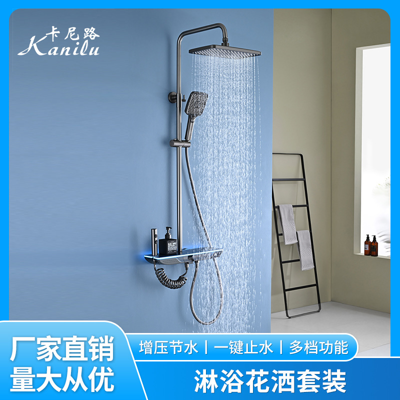 Shower suit 304 suhu konstan, shower kamar mandi multifungsi, dekorasi rumah Hotel, display suhu stainless steel