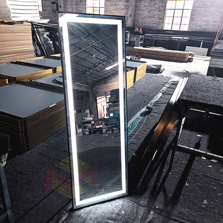 Cermin kamar mandi pintar pabrik penambah rambut langsung cermin kamar mandi bingkai campuran aluminium cermin rias logam seluruh tubuh cermin lantai