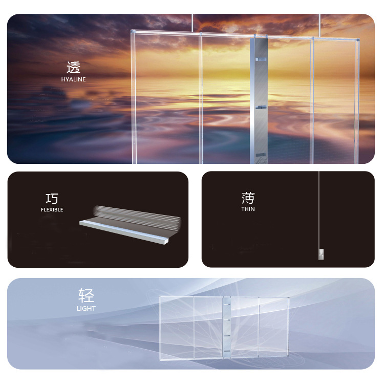Layar transparan LED transparan dalam ruangan layar kaca film kristal fleksibel LED layar es