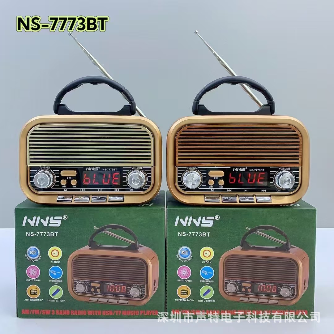 Speaker Bluetooth NS-7773BT Retro Model Baru Dengan LED Display Jam Fitur Portabel Radio