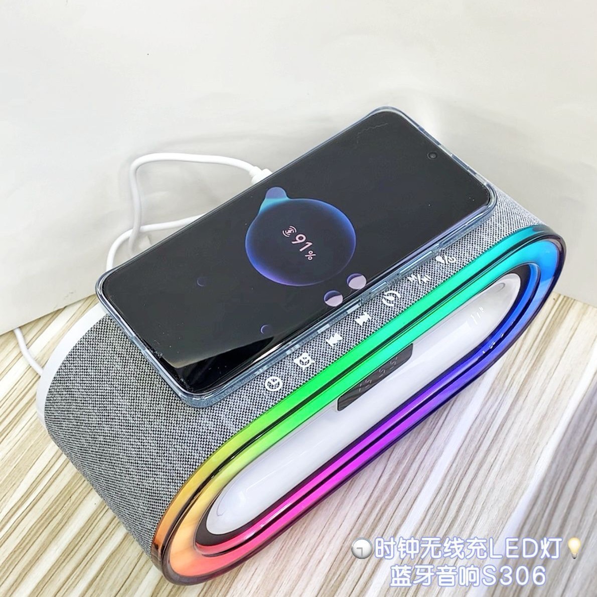 Produk Baru S306 Model Pribadi Layar LED Jam Jam Jam Jam Alarm Pengeras Suara Putih Pengisian Nirkabel Speaker Bluetooth Desktop