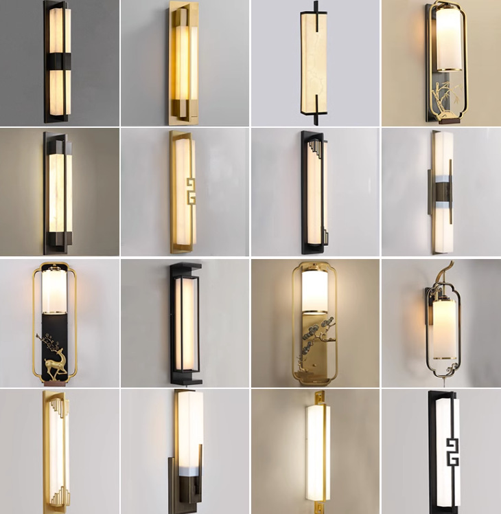 Lampu dinding tembaga luar ruangan, lampu dinding TV ruang tamu dinding eksterior kamar lampu dinding pilar pintu besar bergaya Tiongkok baru untuk vila dan halaman