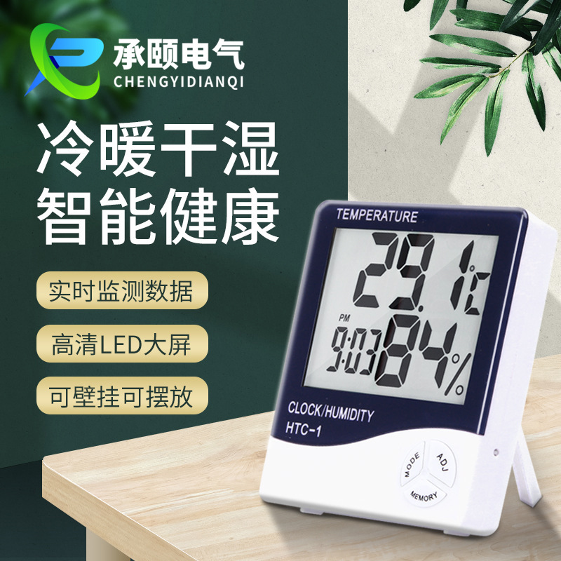 HTC-1 higrometer suhu elektronik dalam ruangan presisi tinggi rumah layar besar dengan alarm elektronik jam pabrik grosir
