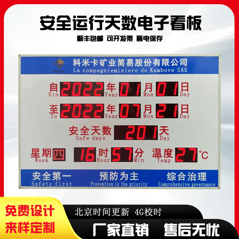 Operasi aman tidak ada kecelakaan elektronik Kanban manajemen produksi; LED display kalender suhu dan kelembaban jam