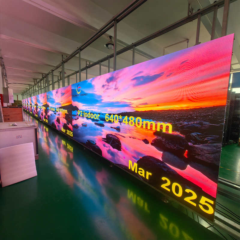 Maret 2025 P2 Layar Penuh Warna Dalam Ruangan 640*480MM Perawatan Depan Magnetik Tampilan LED Energi Warna