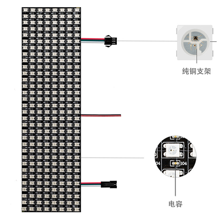 WS2812B layar lembut dapat diprogram layar piksel warna ajaib DC 5V Tampilan sumber cahaya titik fleksibel RGB tegangan rendah