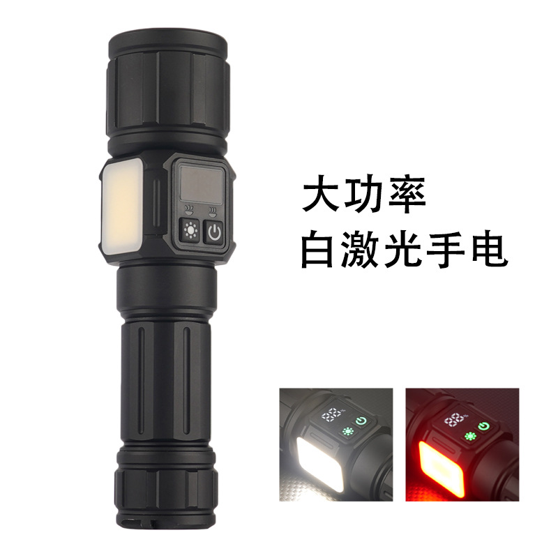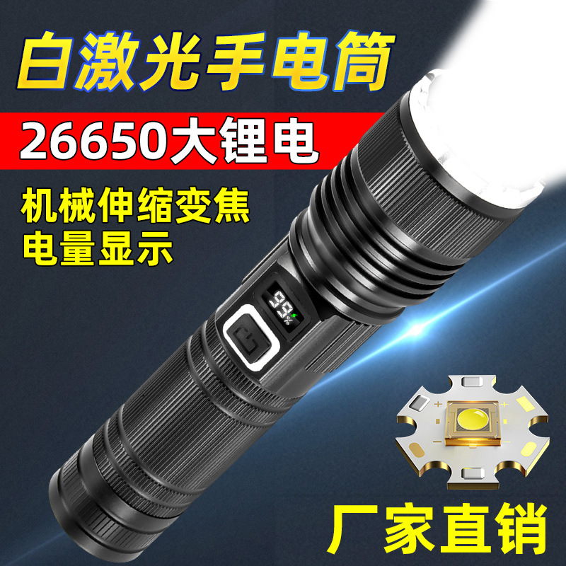 Cross-border senter laser putih baru layar super terang zoom jarak jauh isi ulang dengan lampu tangan luar ruangan