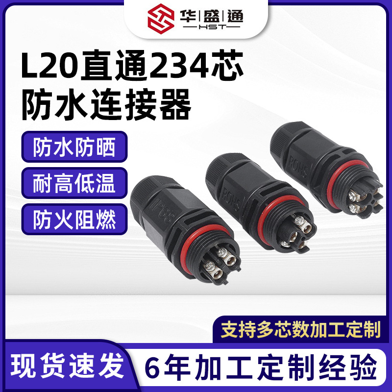 L20 konektor anti air sensor lurus, konektor anti air 234 core, kabel lampu LED luar ruangan, konektor anti air