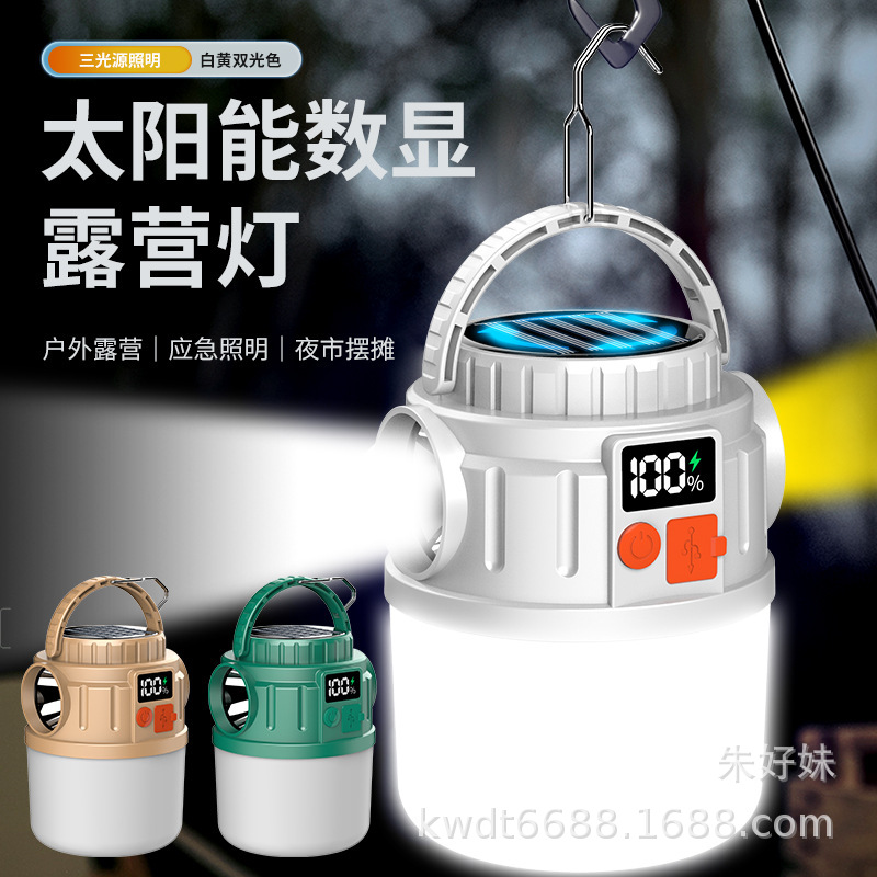 Lampu tembak LED luar ruangan, lampu berkemah digital sumber cahaya ganda lintas batas, tampilan listrik dapat diisi ulang
