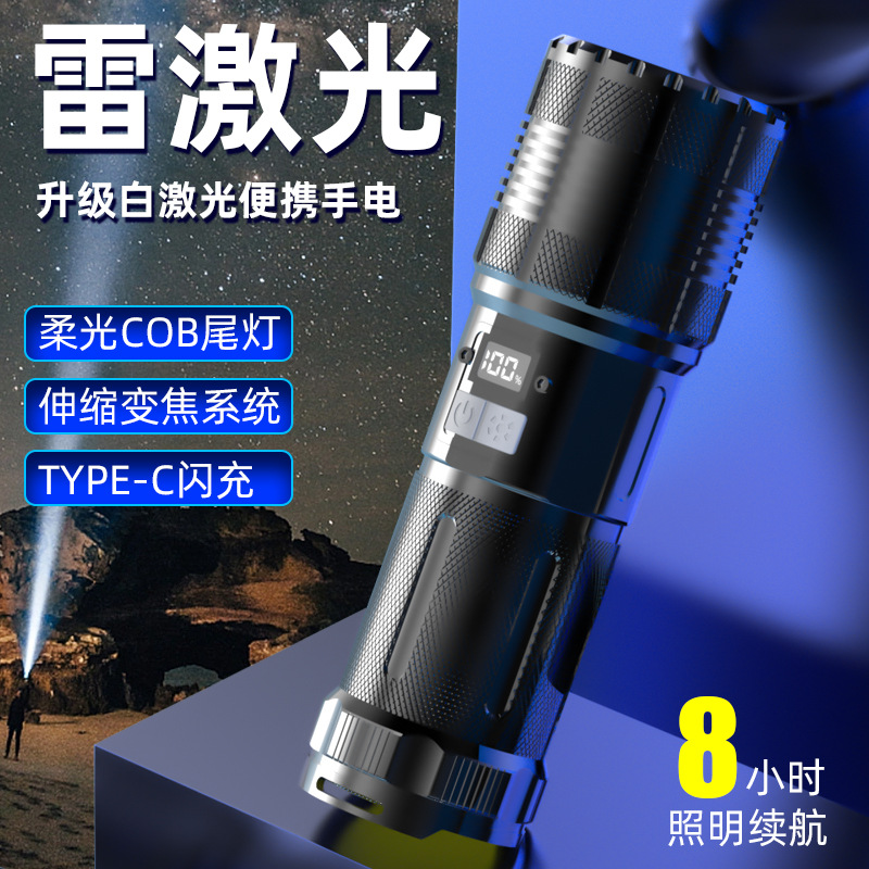 Senter laser Putih zoom, cahaya kuat super terang tembakan panjang luar ruangan rumah pengisian daya tinggi portabel laser baja kecil