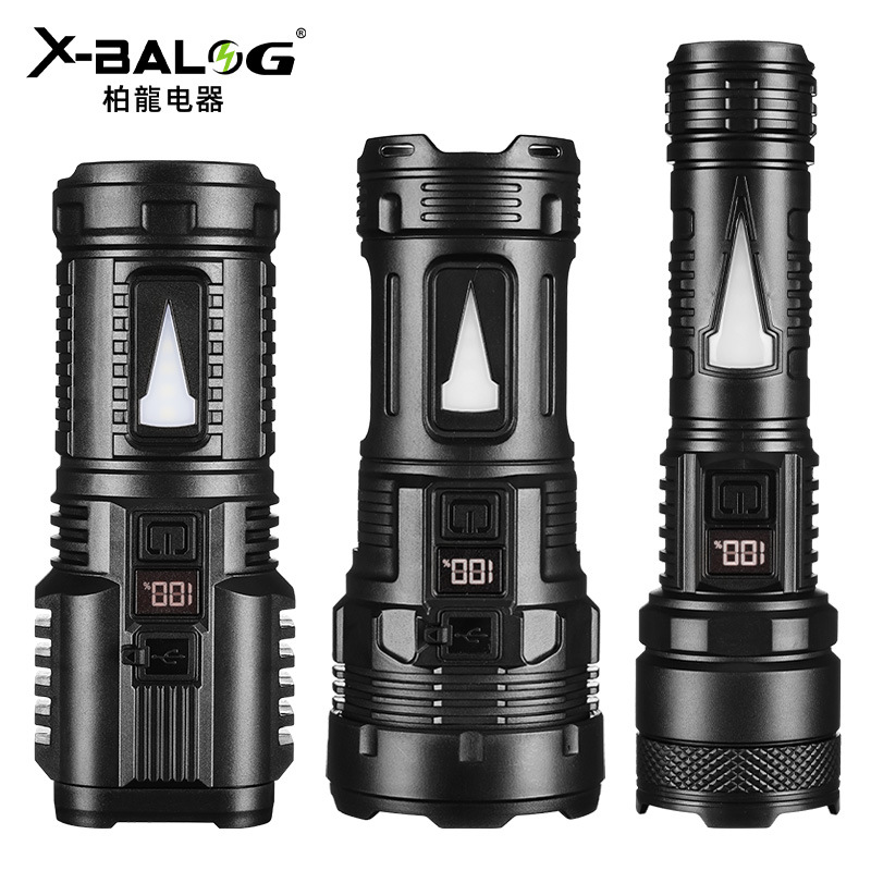 Senter led multifungsi, lampu led 4 manik-manik lampu lintas batas, lampu samping COB, portabel, luar ruangan, layar digital, pengisian USB