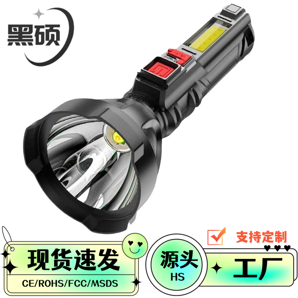 Senter luar ruangan multifungsi, lampu senter kuat lintas batas, lampu samping bekerja dengan tampilan daya pengisian usb