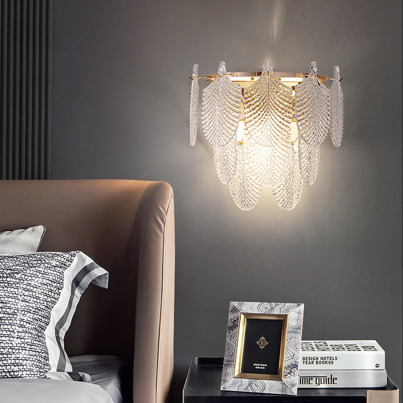 Lampu dinding tembaga Nordic, ruang tamu kamar tidur dinding TV samping tempat tidur modern lampu kaca sederhana mewah post-modern kreatif lampu dinding