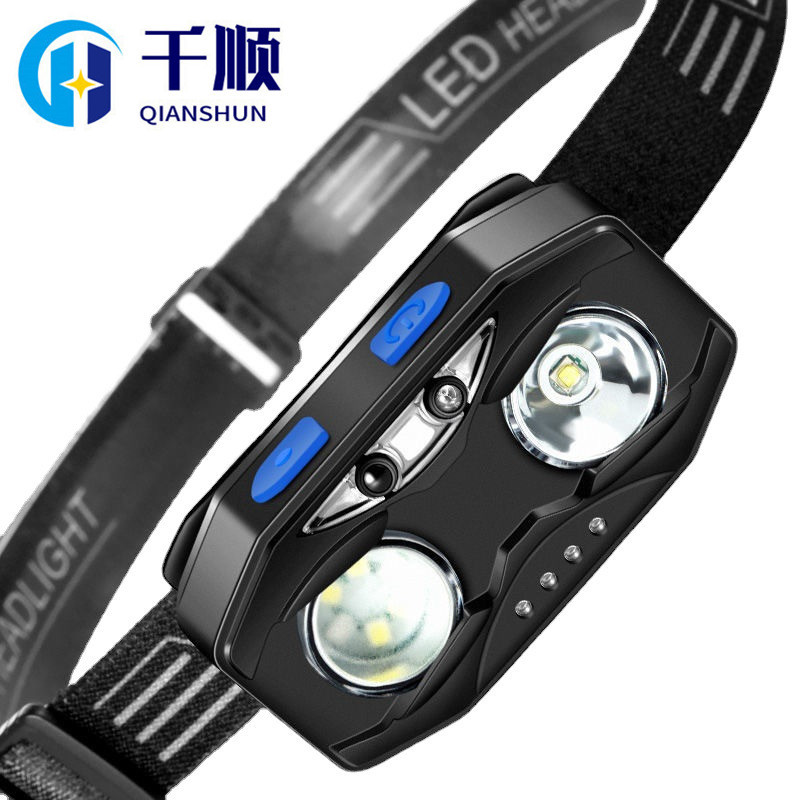 Lampu depan LED Super terang, lampu besar induksi LED jarak jauh dapat diisi ulang untuk memancing malam luar ruangan, lampu depan mini xenon