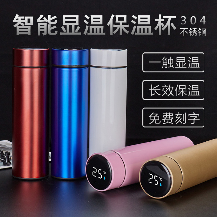 Cangkir Tahan Panas Layar Sentuh LED 304 Cangkir Air Portabel Stainless Steel Cangkir Teh Pria dan Wanita Cangkir Hadiah Berukir Cangkir Mobil