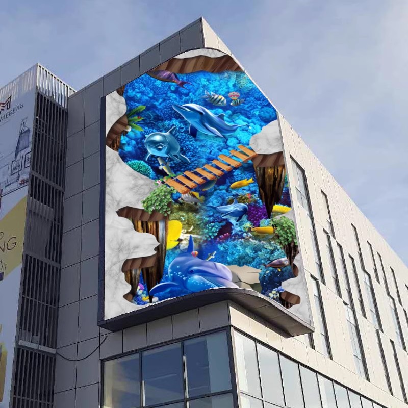 Layar Tampilan LED Penuh Warna Pusat Perbelanjaan HD Telanjang Mata 3D Layar Lengkung Fleksibel Luar Ruangan Tunggal Kolom Ganda Tahan Air Layar Besar