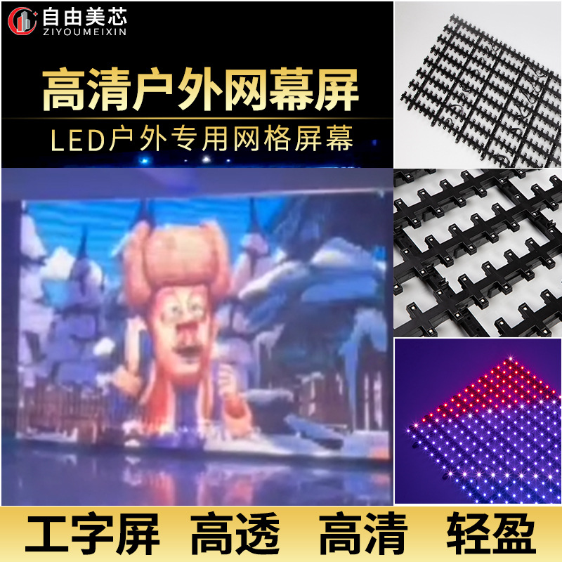 Langsung pabrik Shenzhen P80 layar jala fleksibel luar ruangan layar berbentuk khusus titik layar transparan seluruh layar