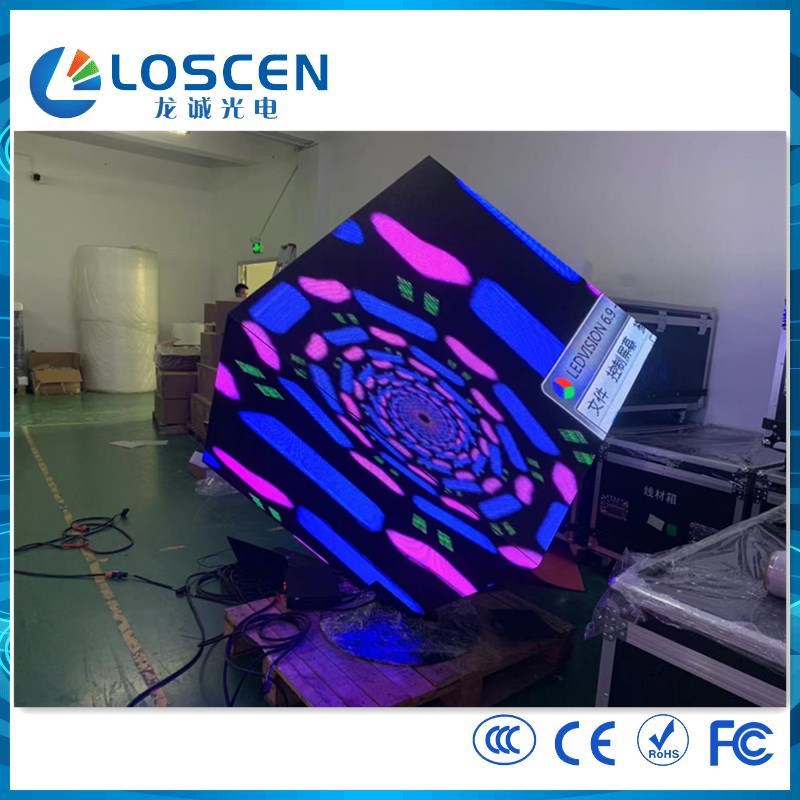 LED4-sided layar kubus 6 sisi layar warna penuh layar iklan dalam ruangan tampilan kubus penuh warna