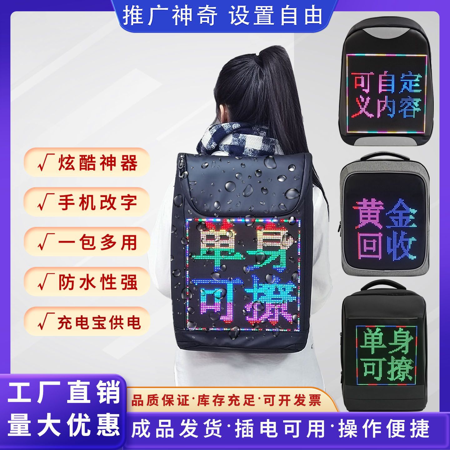 Keren LED Display Penuh Warna Ransel Iklan Mobile Media Bercahaya Ransel Perjalanan Smart Control Display