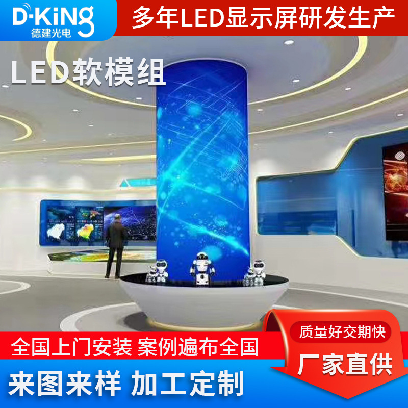 Layar bundar tampilan led penuh warna customization kustomisasi layar lunak fleksibel silinder elektronik dalam ruangan