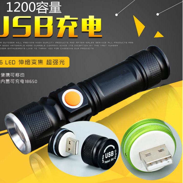Senter isi ulang USB lampu rumah tangga XML-T6 LED perbesaran meregang senter genggam 515