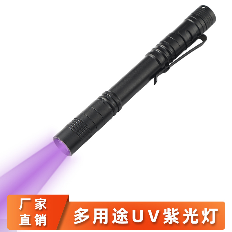 Senter LED multifungsi, senter klip pena baterai paduan aluminium, lampu ungu, detektor uang, Senter LED malam