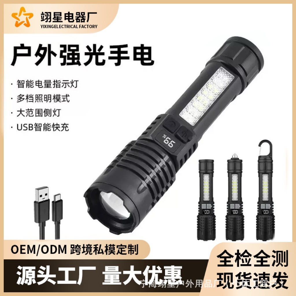 Senter darurat LED, cahaya kecil kuat lintas batas luar ruangan multi-fungsi pengisian daya USB petualangan rumah tangga