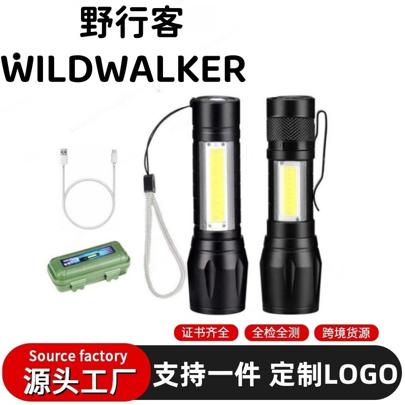 COB senter cahaya kuat led mini, lampu samping logo hadiah 511 zoom teleskopik USB dapat diisi ulang