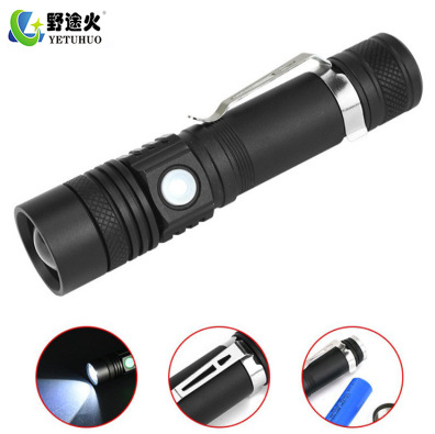 Amazon baru T6 cahaya kuat jarak jauh senter harian membawa USB pengisian luar ruangan teleskopik zoom LED Senter