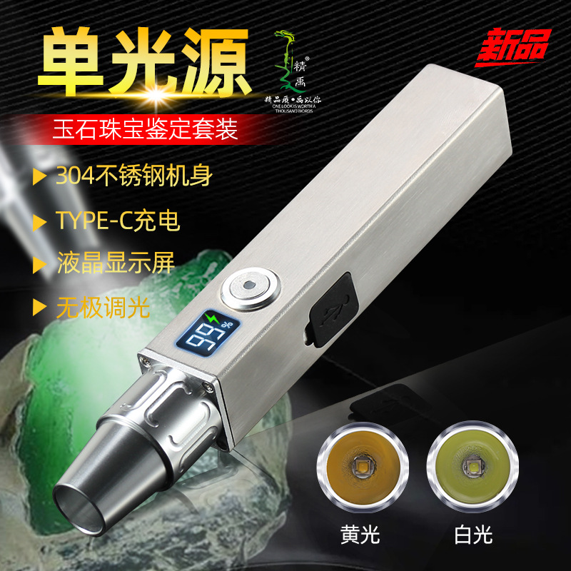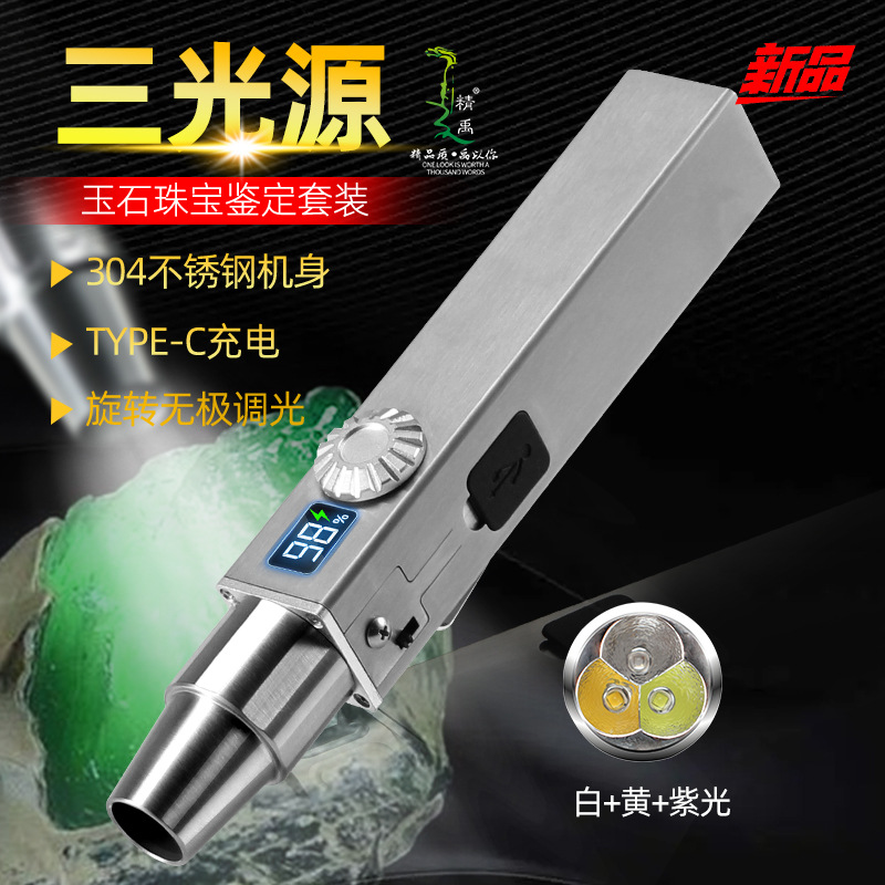 Kenop Khusus Identifikasi Senter Giok Model Baru Senter Sumber Tiga Lampu Dengan Tampilan