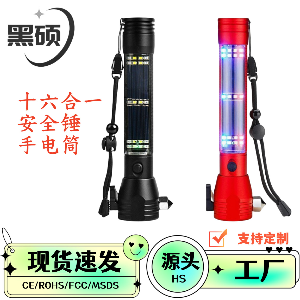 Palu keselamatan kendaraan penyelamatan diri darurat luar ruangan senter pemutus jendela api pengisian daya tenaga surya lampu kerja peringatan cahaya yang kuat