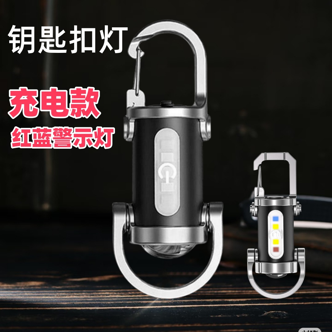 Gantungan kunci lampu senter super terang mini portabel luar ruangan cincin isi ulang lampu darurat rumah tangga untuk perjalanan pendakian gunung