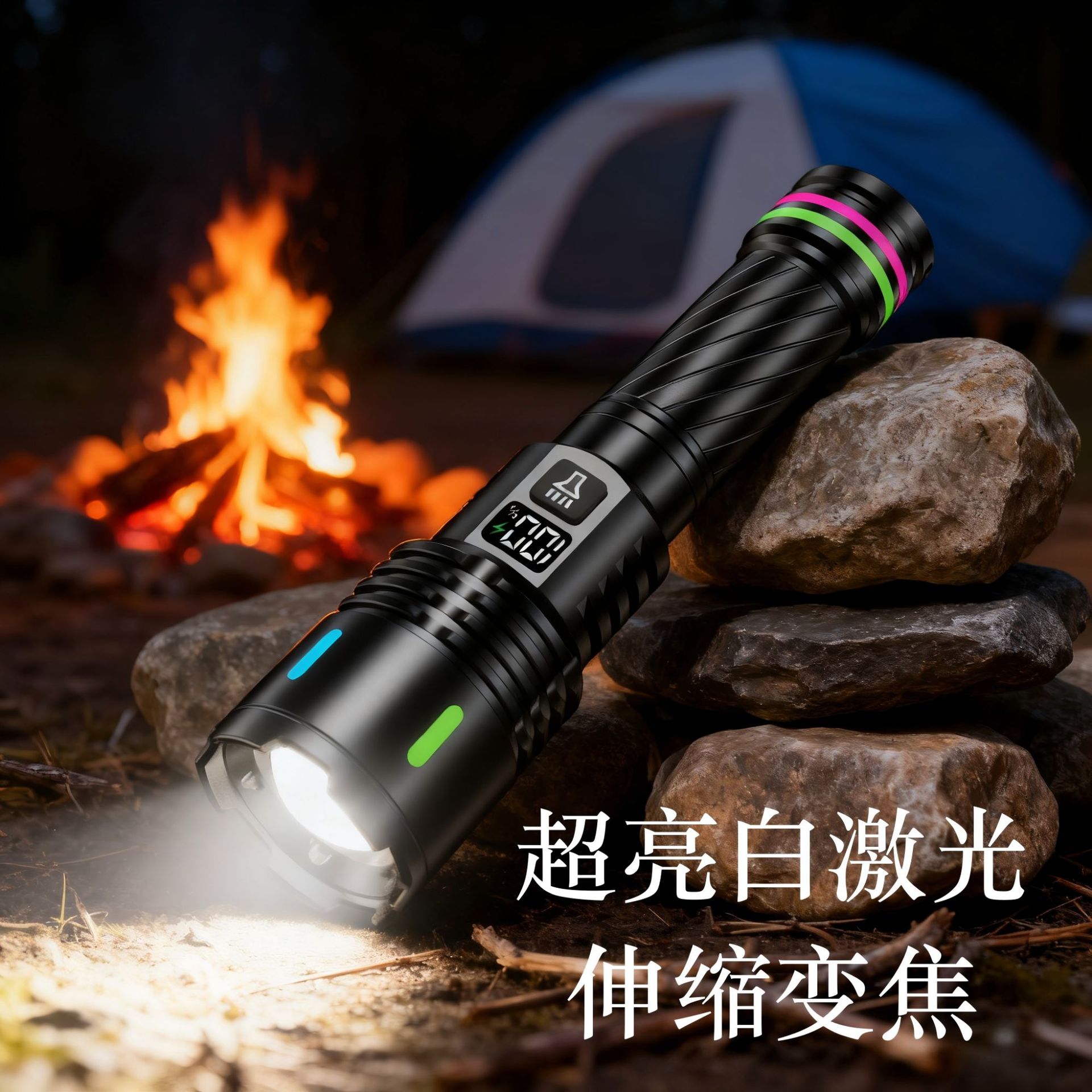Senter Cahaya Kuat Baru Lintas Batas Pengisian Luar Ruangan Digital Warna-warni Portabel Zoom Patroli Jarak Jauh Senter