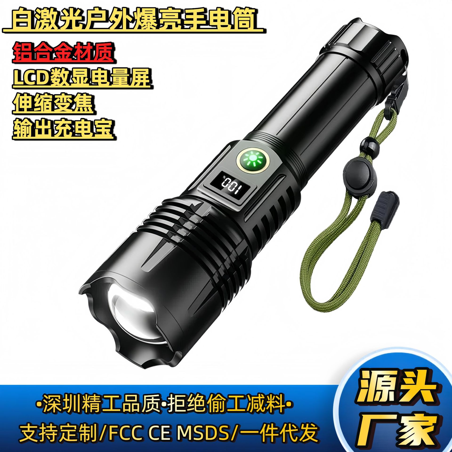 Senter Cahaya Kuat Luar Ruangan Laser Putih Digital