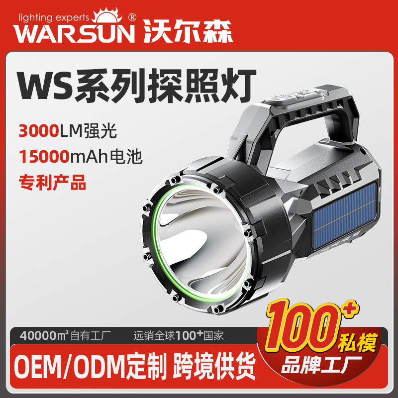 Seri Walson WS Senter Cahaya Kuat Mengisi Daya Super Terang Lampu Detektif Luar Ruangan Jarak Jauh Lampu Senter Tenaga Surya