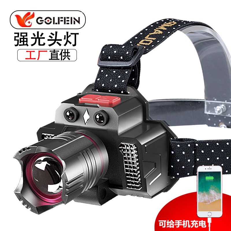 Lampu Kepala LED Tok Tok Lintas Batas Charger USB Lampu Senter Jarak Jauh Luar Ruangan Memancing Cahaya Tinggi Lampu Tambang Tipe Kepala Terang