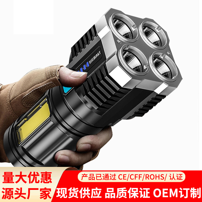 Senter LED samping USB lintas batas, lampu kuat baru, lampu sorot jarak jauh portabel luar ruangan, tampilan digital rumah tangga