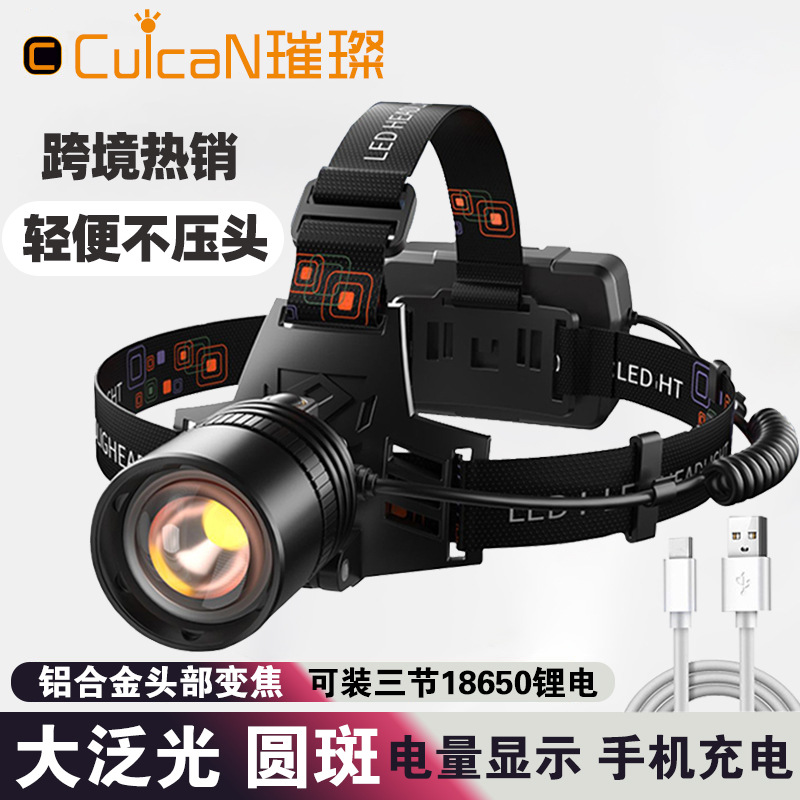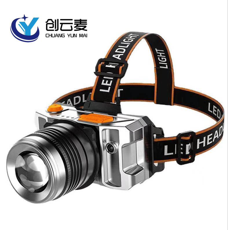Lampu depan LED Cahaya kuat lintas batas, lampu sorot berkemah luar ruangan, lampu penambang memancing malam isi ulang daya tahan lama