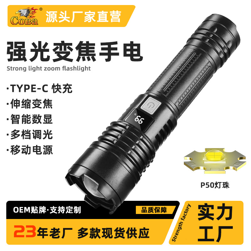 Senter Cahaya Kuat Baru Lintas Batas Pengisian Senter Super Terang Luar Ruangan Layar Daya Jarak Jauh Senter P50 Multifungsi