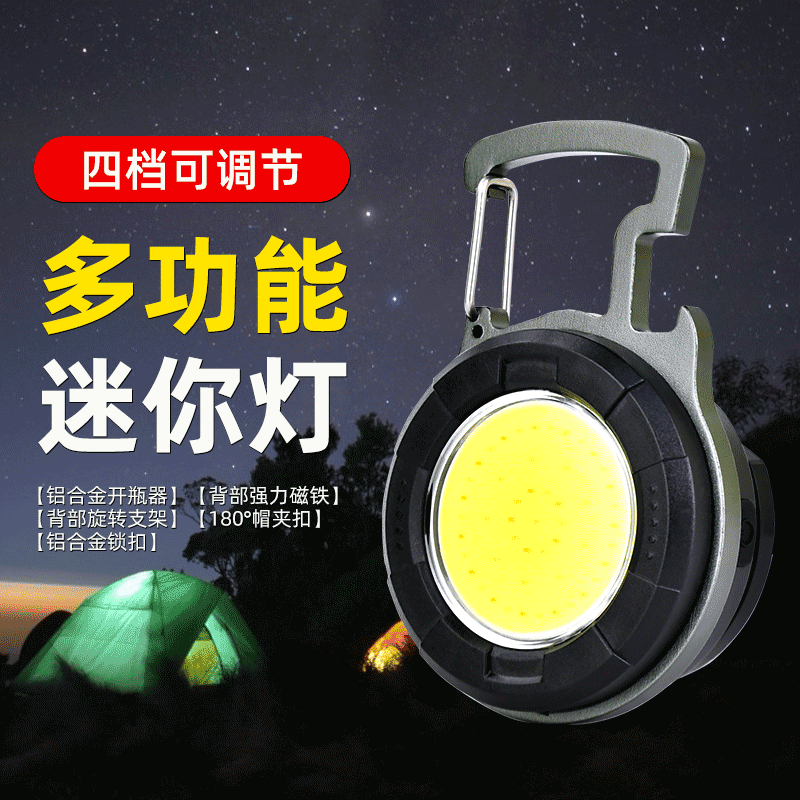 Gantungan Kunci lampu led, gantungan kunci cahaya portabel luar ruangan, senter gunung Mini, gantungan kunci COB lintas batas