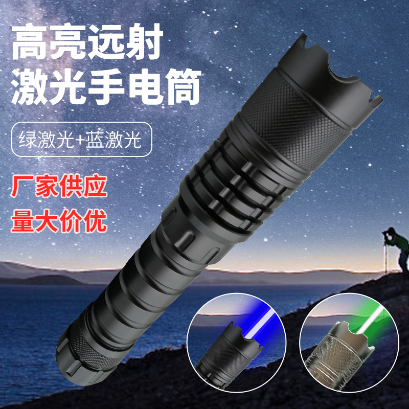 Senter laser dua warna jarak jauh, lampu sorot luar ruangan memancing malam bepergian, senter aluminium Aloi putih grosir