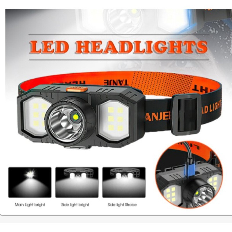 Lampu depan LED lintas batas, pengisian lampu luar ruangan jarak jauh dipasang di kepala senter USB pengisian cahaya ganda sumber cahaya COB lampu memancing