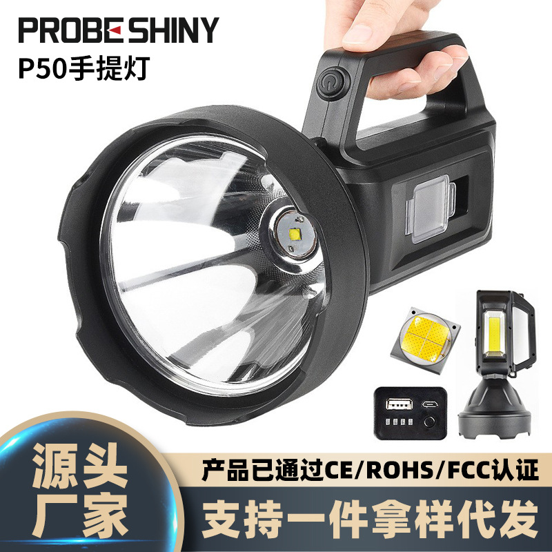 Senter lampu langsung pabrik lampu luar ruangan super terang dengan lampu samping COB senter darurat portabel isi ulang