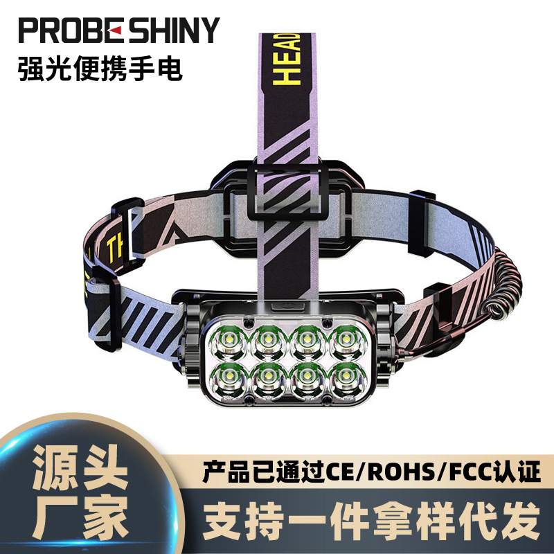 Cross-border lampu kepala USB cahaya kuat, isi ulang T6 cahaya putih + lampu merah COB lampu luar ruangan memancing super terang senter terpasang di kepala