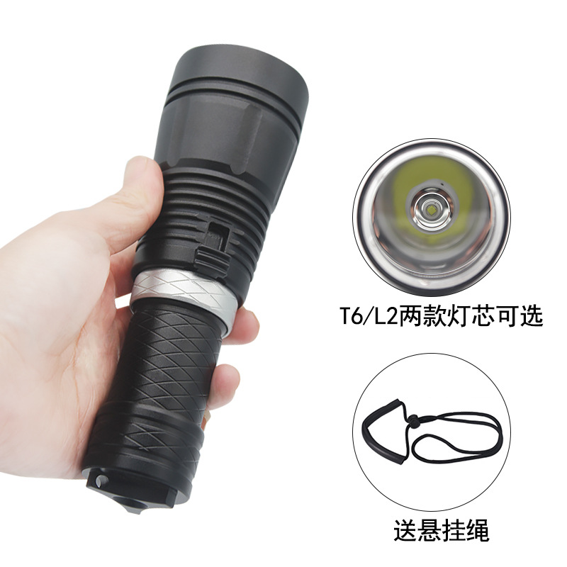 L2 senter selam laut dalam, senter selam T6 cahaya kuat lintas batas 26650 untuk menyelam di laut dalam, Senter selam bahan Aloi aluminium