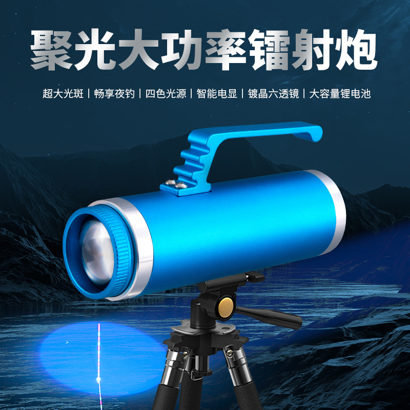 Sky Fire lampu memancing di malam hari, lampu memancing laser, lampu xenon daya tinggi super terang, lampu kuat, lampu zoom, memancing liar, lubang hitam, cahaya biru