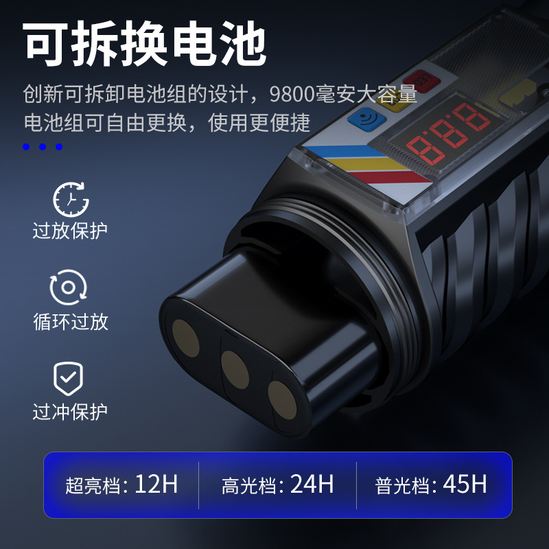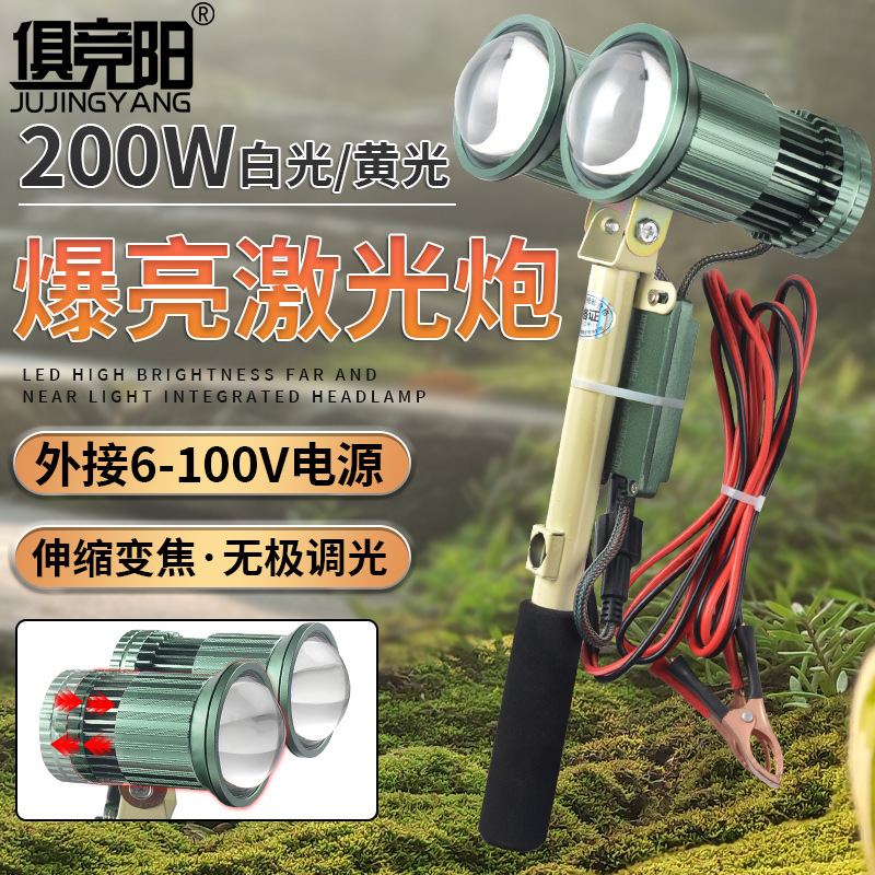 Lampu kepala laser genggam 12V, lampu kepala super terang tembakan panjang led zoom 100W cahaya kuat luar ruangan lubang hitam memancing malam