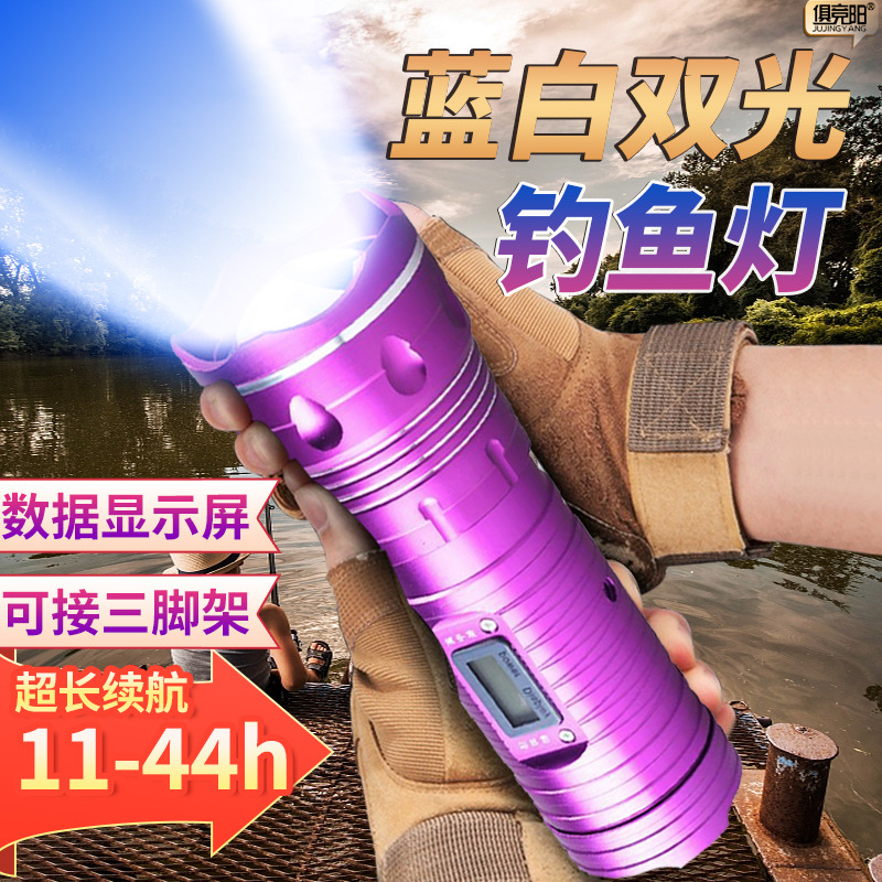 Jujingyang JY-606 cahaya biru digital cahaya putih lampu pancing 10W sumber cahaya ganda lampu memancing malam pengisian daya 6 kecepatan zoom teleskopik